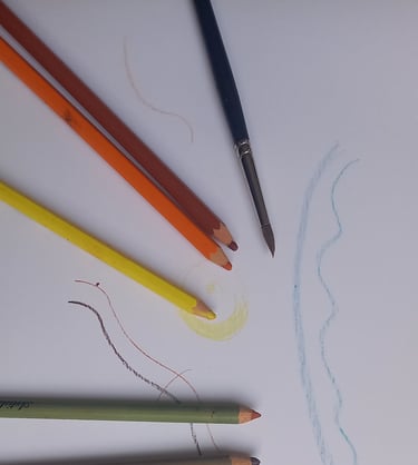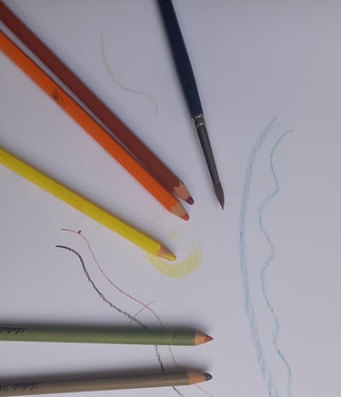 Bleistift, Aquarell- Stift & Pastell werden zusammen verwendet. Nach Absprache können auch andere Settings zusammengestellt und vorbereitet werden