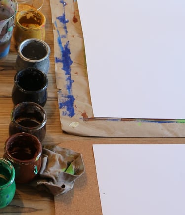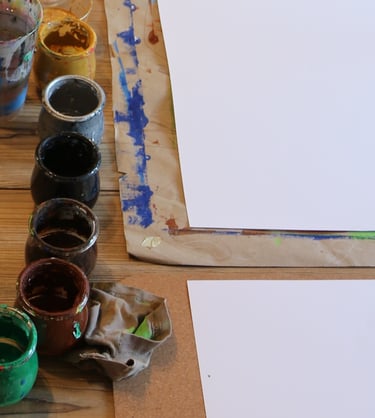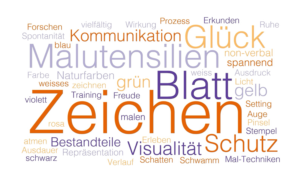 Im Atelier werden überwiegend Materialien verwendet, die leicht waschbar und nicht gesundheitsschädigend wirken. Gerne kann ein Mal-TI-shirt Mal- Schürze oder Mal-Hemd mitgebracht werden.